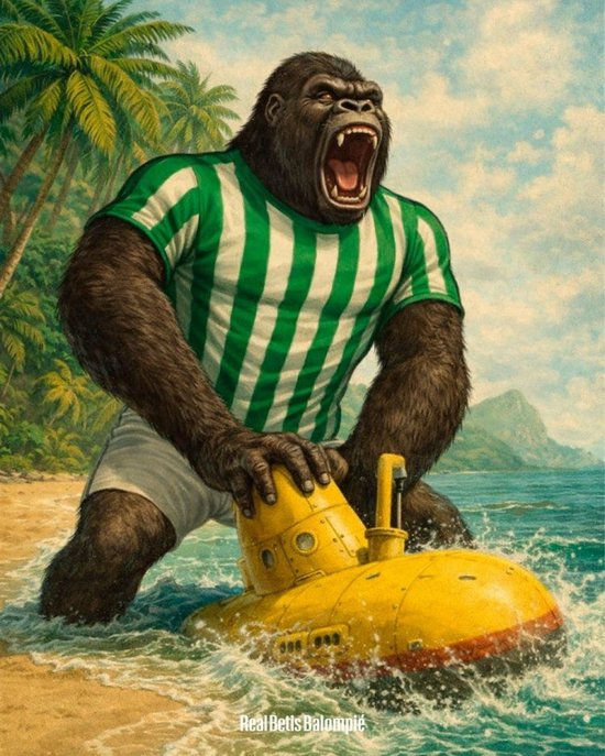 赛后贝蒂斯以海报回敬,蹂躏内容为身穿贝蒂斯球衣的潜水“金刚”蹂躏黄色潜水艇,配文:“潜艇已被制服。贝蒂比利”