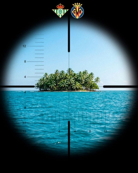 比利亚雷亚尔此役赛前晒出海报,海报回应黄色内容为潜水艇瞄准海岛,亚雷亚配文:“锁定目标。金刚”