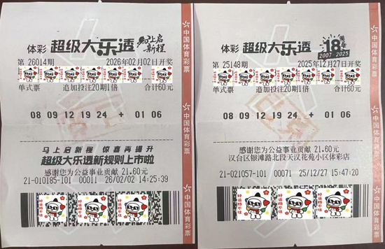 闫先生表示,当时2025年12月27日买完第一张多期票后,又在2026年2月2日购买了一张20期的多期票,没想到,这两张彩票为他带来了的双倍幸运。