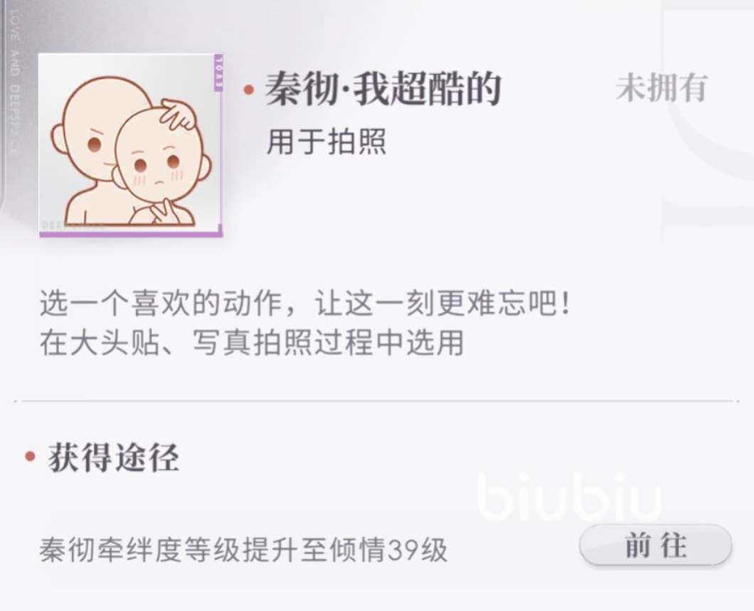 ①选择秦彻单人拍照,触发动作是“有点意思”,背景可以随便选择。秦彻的“有点意思”动作是升级牵绊可获,此外,在羁绊71级时也可以获得新的花动作触发一条朋友圈。