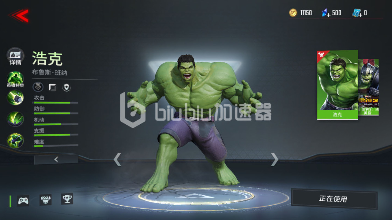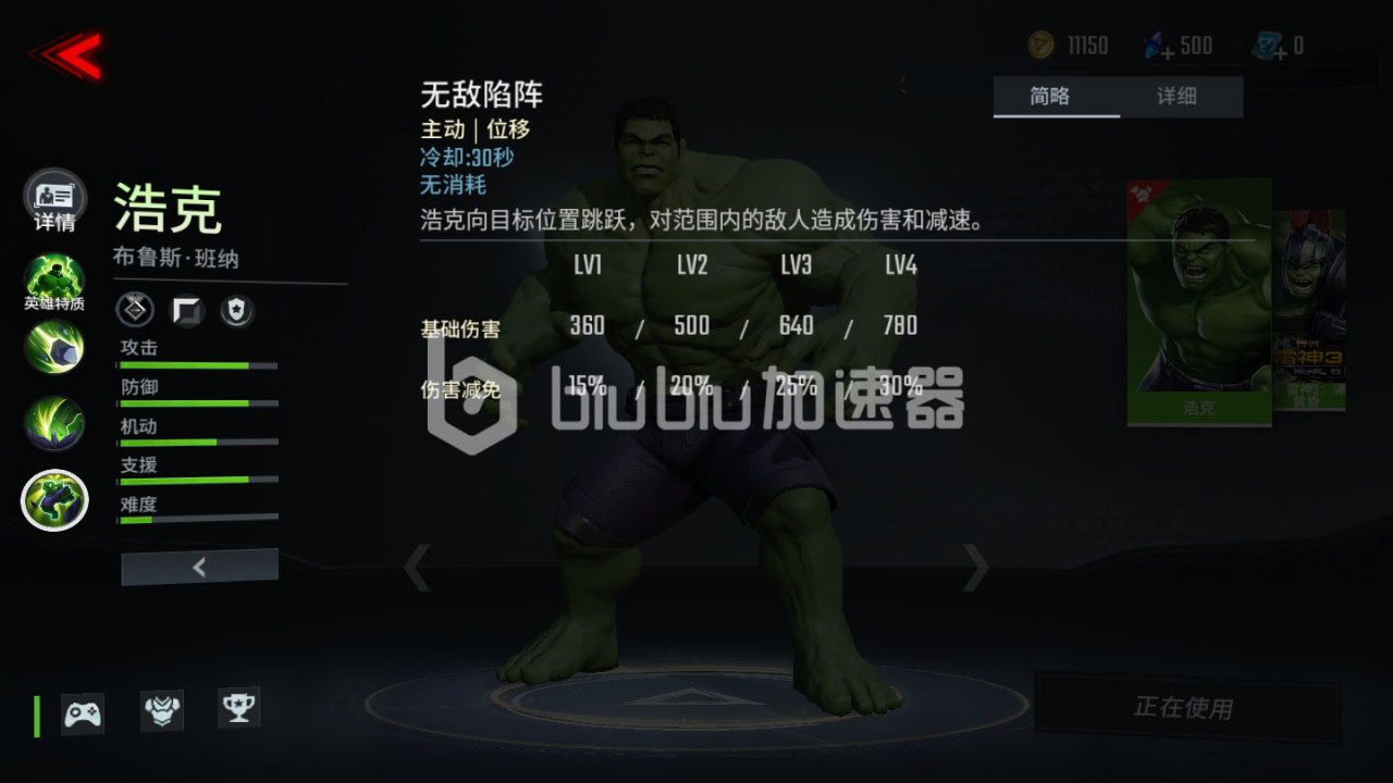 3、轻松提升速度:绿巨人在使用技能之后可以提升移动速度,压制以及额外伤害和回血。漫威