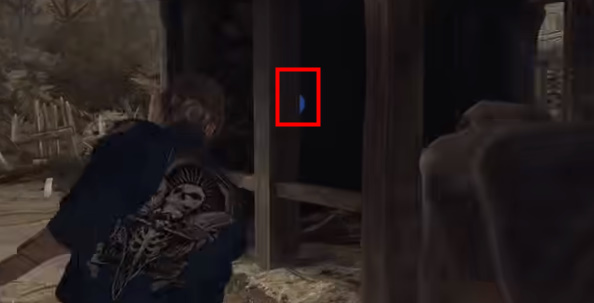 6、来到牛棚后面的墙角,找到蓝色徽章。