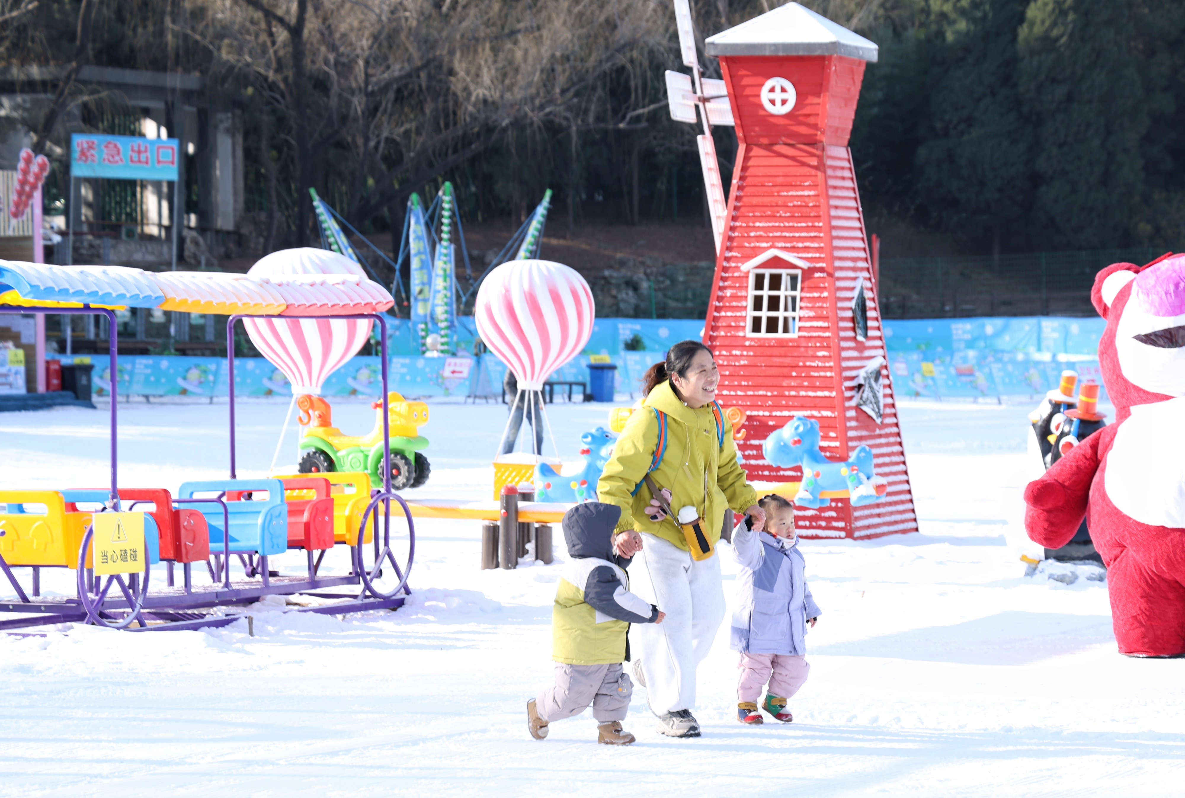 12月26日,紫竹院公园第九届欢乐冰雪季正式开幕,紫竹市民带着孩子在雪地上享受冰雪之乐。院公园冰新京报记者 薛珺 摄