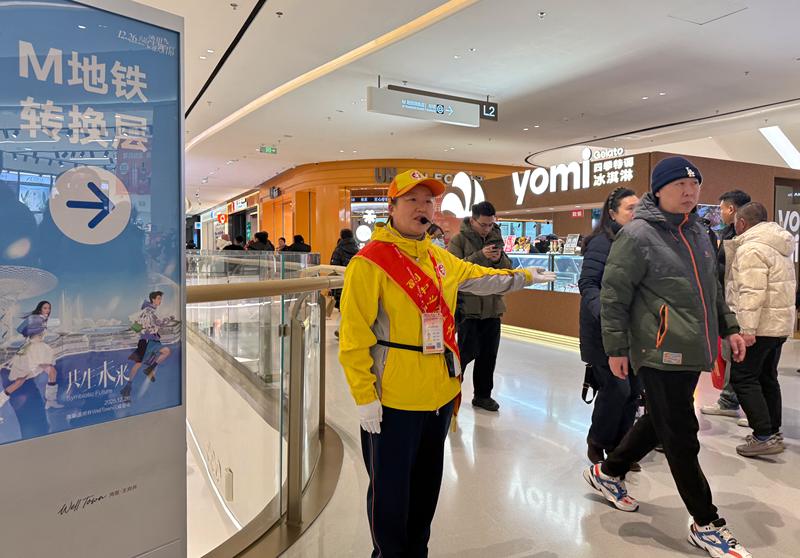 公共文明引导员为市民公共交通出行指引。新京报记者 王贵彬 摄