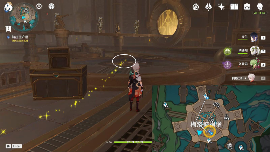 6、之后与格内薇芙对话,接着去往生产区并按照下图步骤进行操作,然后再调整时间至次日18:00-22:00;
