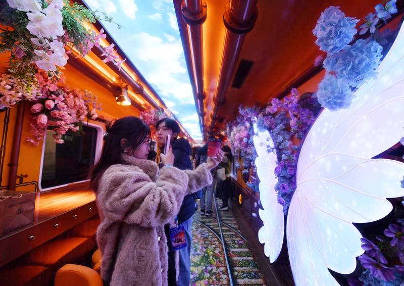 新京报讯(记者裴剑飞)2026年1月1日起,演艺“津旅时光号”天津北站-北京站线路正式开通运营。互动号列该项目由中国铁路北京局集团有限公司(以下简称“国铁北京局”)联合天津市旅游(控股)集团有限公司(以下简称“天津旅游集团”)共同打造,拍照通过把文化符号与出行服务深度植入交通场景,津旅今起开启“登车即体验、时光出行即参观”的车新新型生活方式。