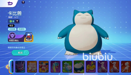 卡比兽的第三次普攻会变为强化,命中敌人的时候还会对周围造成伤害并降低移速,被动能让自身在朝着有树果的方向移动时提升移速,且吃下树果后能获得能力的替身,它的第一个技能是睡觉,使用会直接躺在原地睡觉回复自己的血量,它的第二个技能会使用肚皮冲击敌人,命中的时候会再次伤害并且将人击退,卡比兽的大招能进入睡眠状态,对范围内的地方宝可梦持续造成伤害和击飞,自身回复血量,在睡眠状态中的卡比兽不会受任何控制效果的影响。
