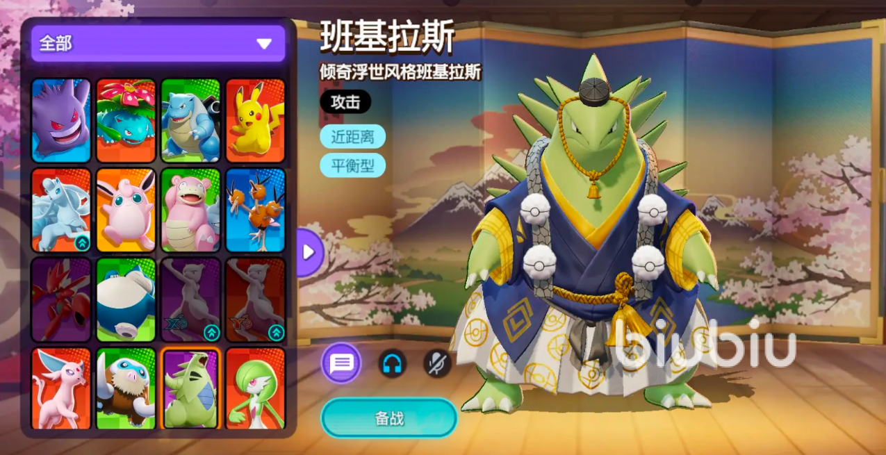 班吉拉斯是少见的拥有三种被动的宝可梦,它的原始特性是毅力能在受到攻击力时短时间内提升自身攻击力,一阶进化后的特性是蜕皮能在受到伤害时,解除异常状态并获得一个护盾,二阶进化特性是扬沙,能在使用技能后刮起风暴对周围敌人持续造成伤害并提高自身的防御力;