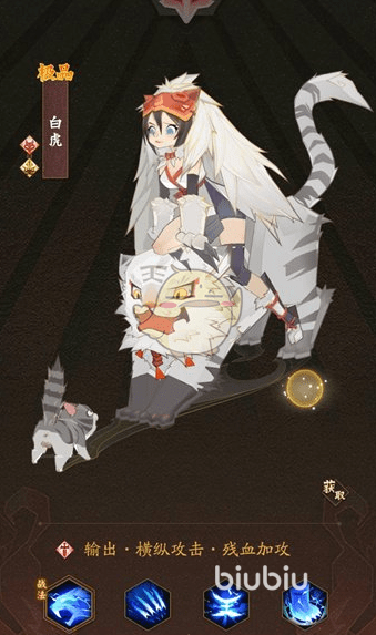 最后一个技能是白虎的觉醒技能,名为虎煞,双方的所有角色只要有一个生命值低于60%,白虎就会增加20%的攻击力,最高叠加到100%,这就意味着不管敌人还是自己,只要血量越少,白虎的攻击就会越高,这也是白虎最为强大的地方之一。