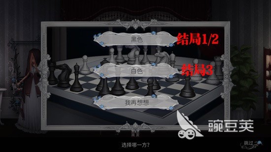 将刚才获得的透明棋子放到棋盘中,然后就会出现决定结局的选择。选择黑色是走向结局一或者结局二,选择白色是结局三。