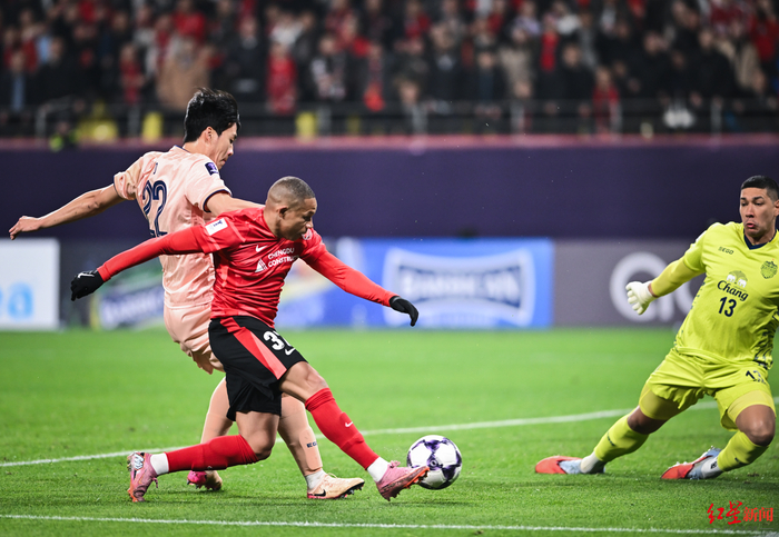 第13分钟,韦林顿·席尔瓦在前场抢断成功后杀入禁区小角度射门,虽然被埃瑟里奇挡出,但也吓出对手一身冷汗。第29分钟成都蓉城门前也出现险情,在防守对方左路传中时禁区内后点漏人,给了武里南联前锋辛德勒在门前从容停球打门的机会,好在门柱将辛德勒的射门挡出,成都蓉城逃过一劫。第41分钟武里南联队的素帕那利用速度从中场高速启动直扑禁区内,在他拉弓搭箭准备射门时,被身后狂追40多米的胡荷韬伸脚化解。尽管之后武里南联队利用任意球,由素帕那在门前补射破门。但经过视频助理裁判提醒,主裁判荒木友辅认定武里南联球员越位在先,进球被判无效。