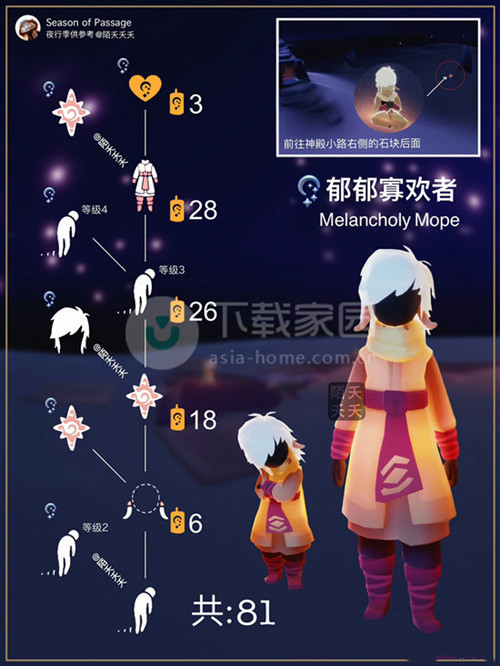 光遇忧郁自艾者整个人自带忧郁性格,光遇有点跟其他人不合群,忧郁思想比较顽固,自艾者复就比较好笑。刻攻接下来小编就为大家介绍下光遇忧郁自艾者复刻攻略,光遇一起来看下这位先祖的忧郁复刻兑换表,以及所在位置吧。自艾者复