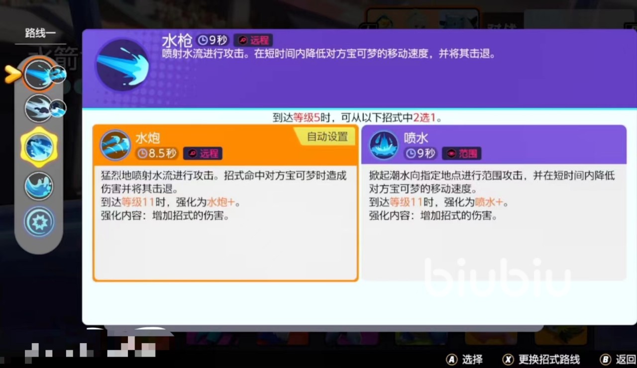 水箭龟的点分输出技能并不多,想要打满伤害条件非常苛刻。宝可宝就拿其核心技能喷水来说,作为多段伤害想追着对手一直喷打出可观的伤害,除了考验玩家的命中率以外,还要看释放时机,对方可是不会站着傻傻让你一直打的。