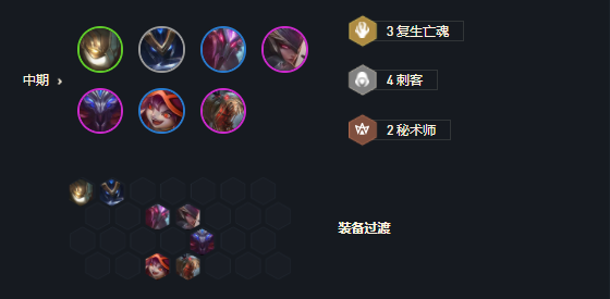 三、云顶阵容羁绊:4/4复生亡魂、1/1灵罗娃娃、4/4刺客、2/2秘术师