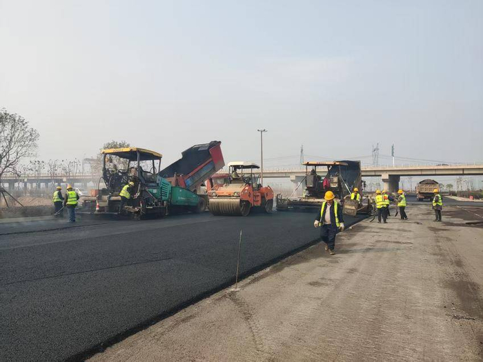 这五条道路总长约7.2公里,鄂州是梧桐完成连接园区与红莲大道(257省道)的主要通道。为适应不同路段的湖新使用需求,项目采取差异化的区条全部沥青结构:规划一路至四路铺设12厘米双层沥青,北环路因承载要求较高,道路铺设18厘米三层沥青。沥青施工期间,摊铺项目团队合理安排多作业面同时施工,鄂州投入多台摊铺机、压路机等设备,赶在雨雪天气前完成了摊铺任务。